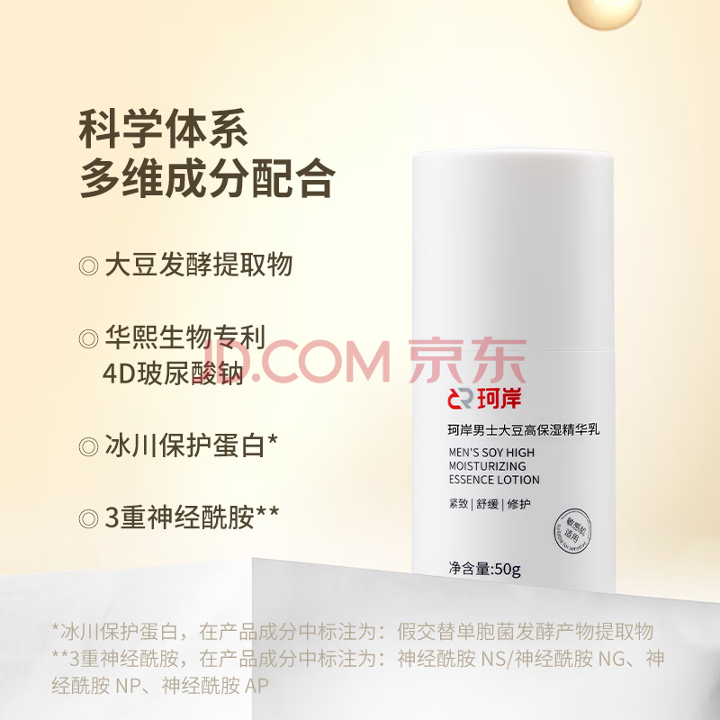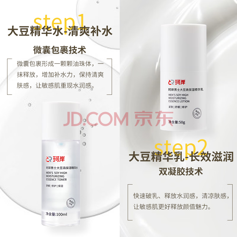 商品相册:珂岸华熙生物秋冬保湿清洁洗面奶水乳液面霜套装男大豆水乳保湿套装第
