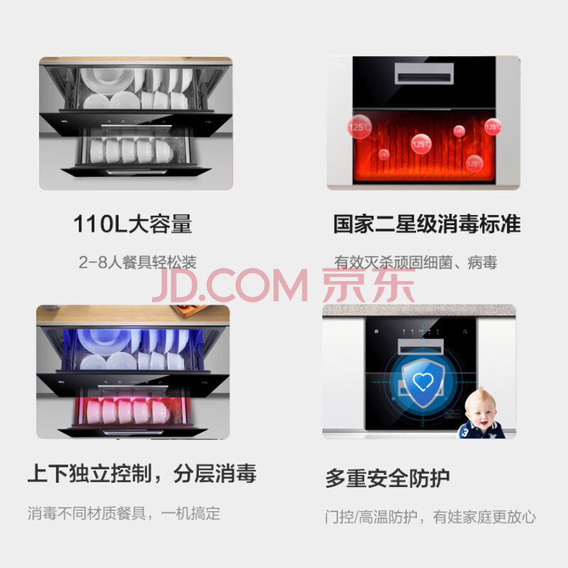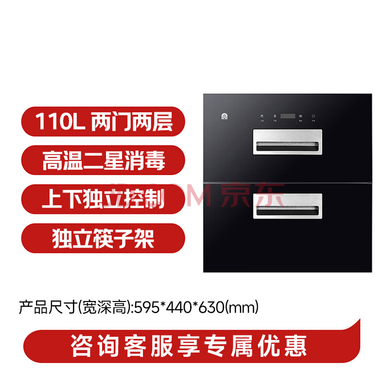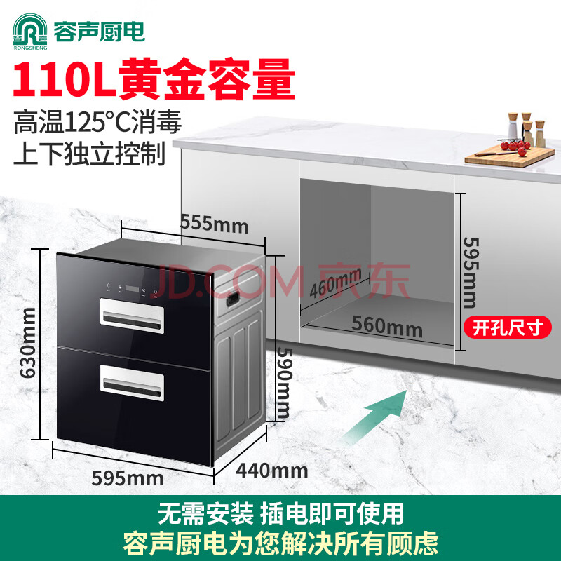 商品相册:容声消毒柜嵌入式家用厨房消毒碗柜高温紫外线碗筷消毒柜110L大容量RX02F(A)第1张/共9