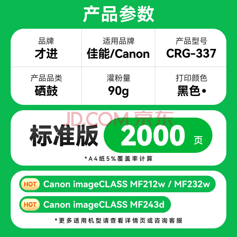 商品相册:才进佳能MF211硒鼓MF215 MF243d MF249dw 210 CRG337碳粉盒LBP151dw 246dn 232w 236n打印机墨盒212w碳粉墨粉第
