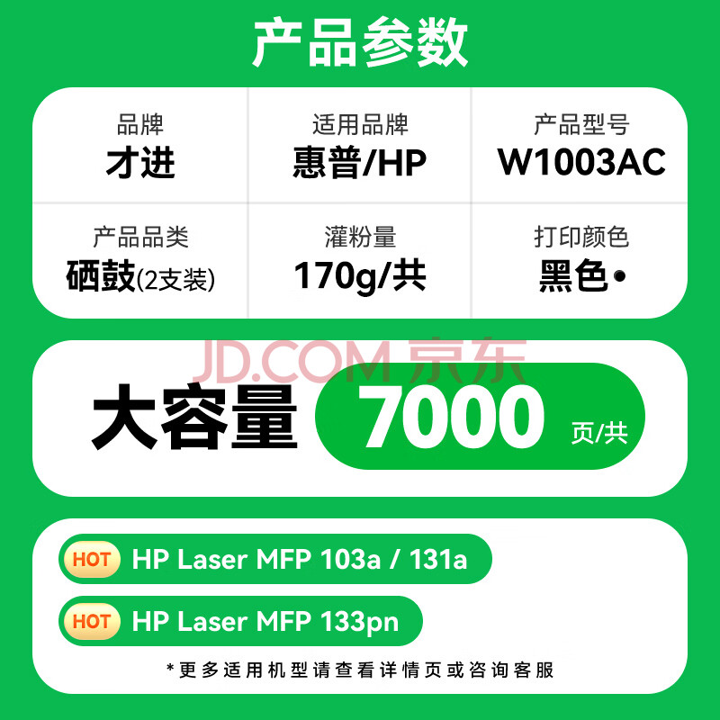 商品相册:才进适用惠普103a硒鼓带芯片131a打印机硒鼓HP Laser MFP 133pn碳粉墨盒易加粉w1003ac激光复印一体机墨粉盒第
