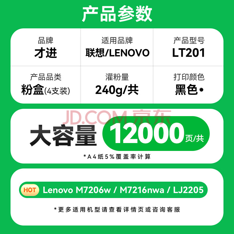 商品相册:才进适用联想m7206硒鼓lt201粉盒m7216nwa打印机m7206w墨盒s1801 m7256whf复印一体lj2205墨粉m1851碳粉m1840第