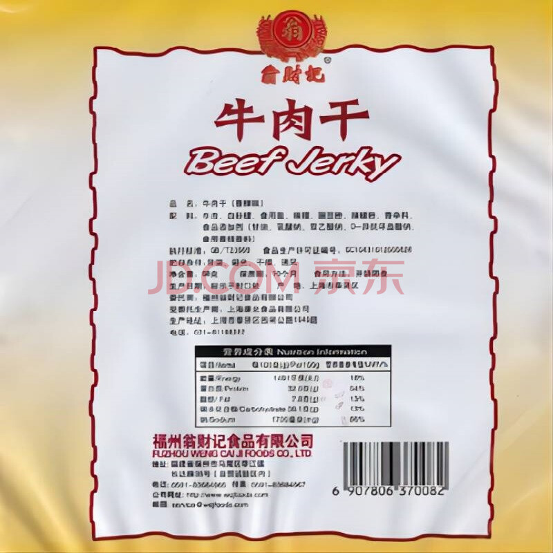 商品相册:翁财记沙嗲味牛肉干68克/包第