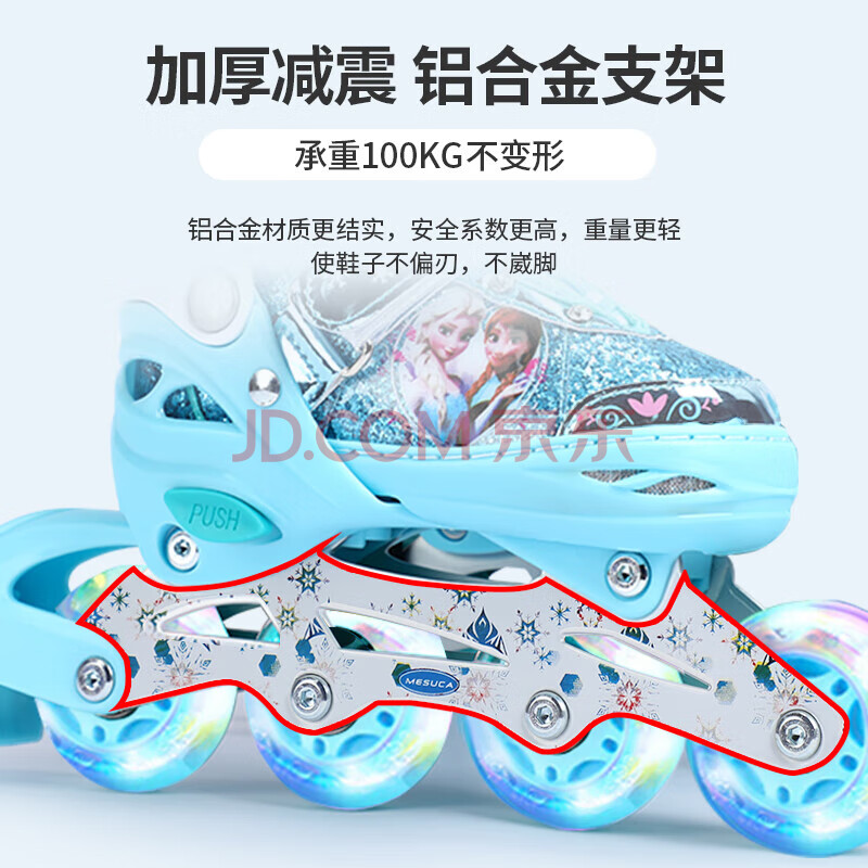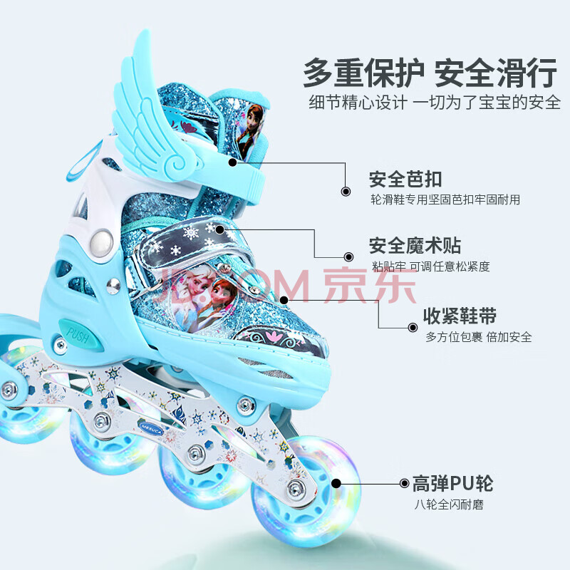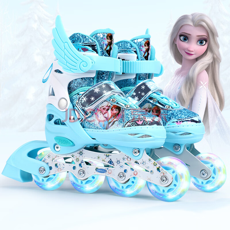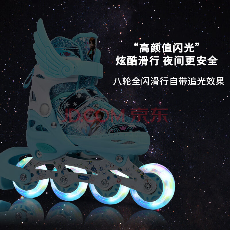 商品相册:迪士尼轮滑鞋儿童溜冰鞋男童女童套装初学可调直排旱冰鞋八轮全闪大码第