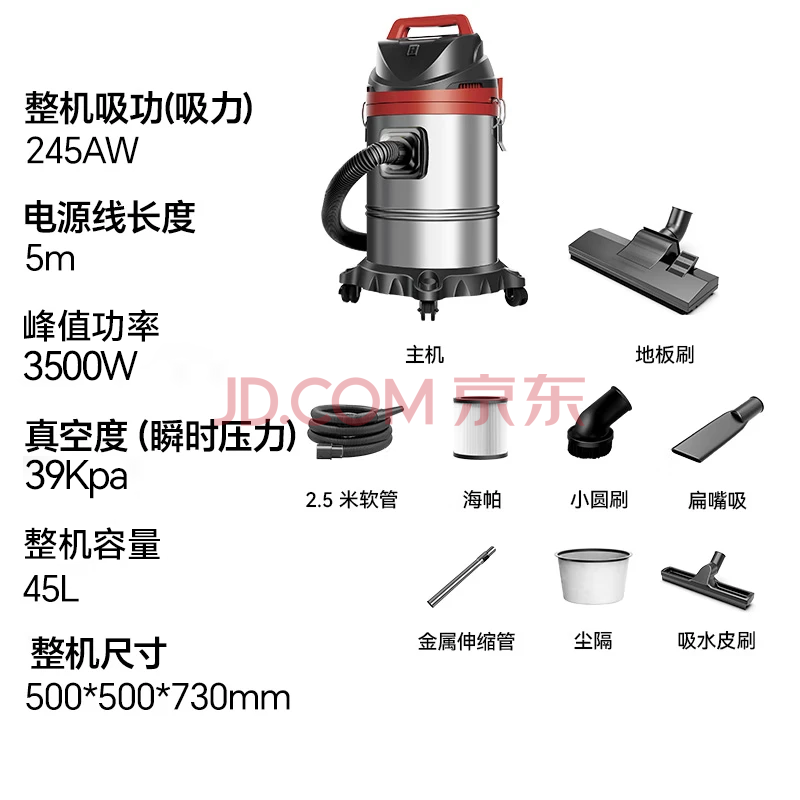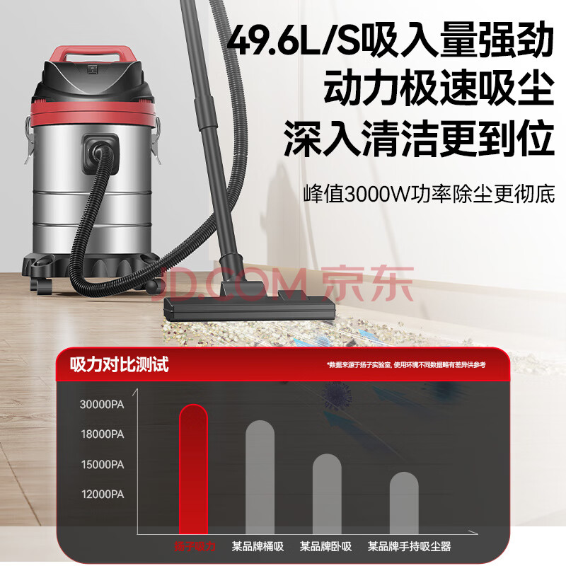 商品相册:扬子工业吸尘器峰值3500W大功率45L容量开荒美缝保洁装修酒店地毯商用干湿吹强力吸尘机大容量CX-3000B第