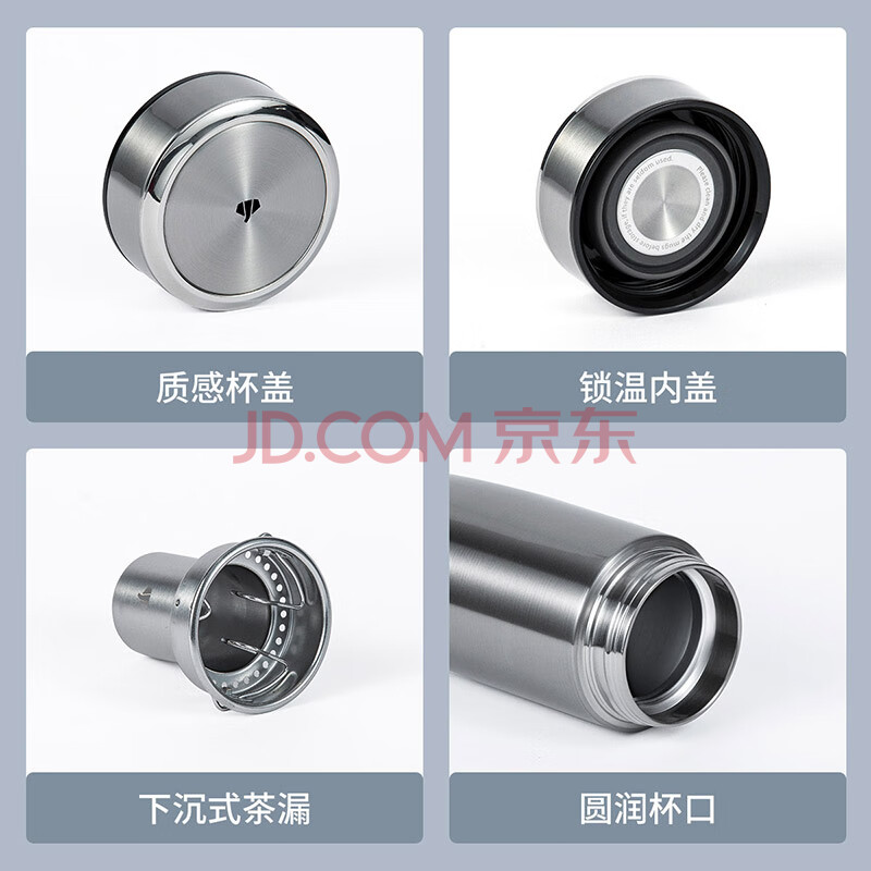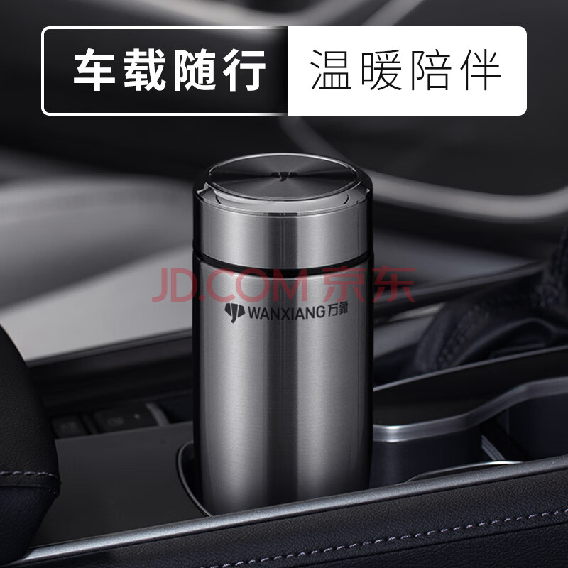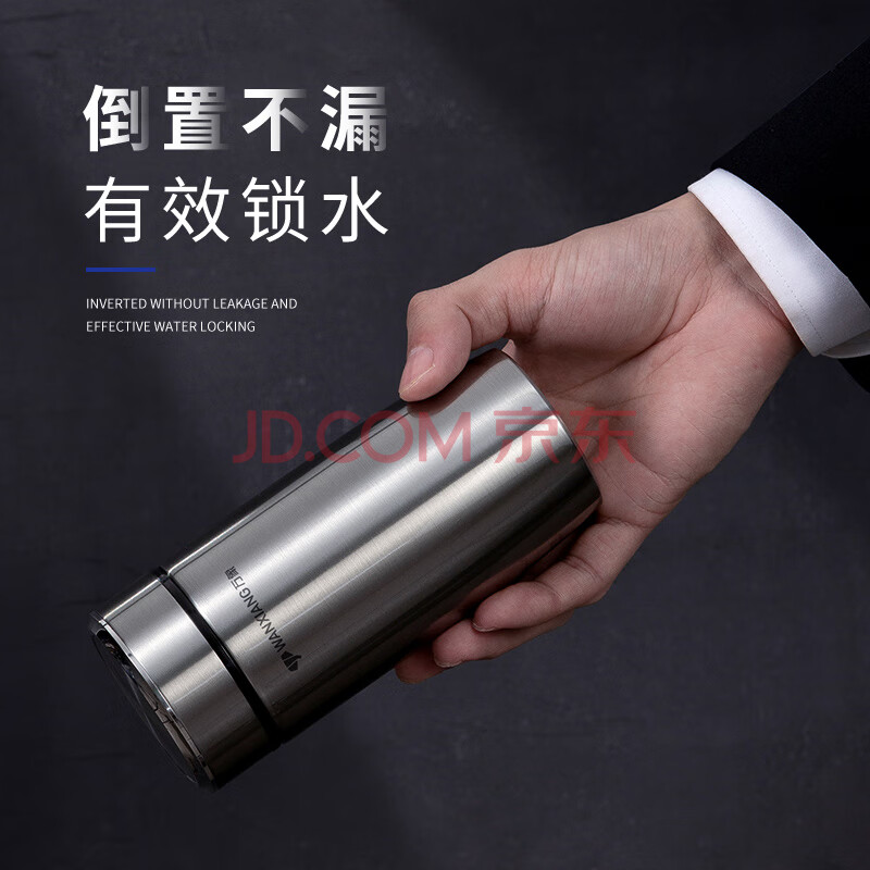 商品相册:万象(WANXIANG)男女士保温杯280ML钛银色商务办公带茶漏水杯便携弧形泡茶杯第