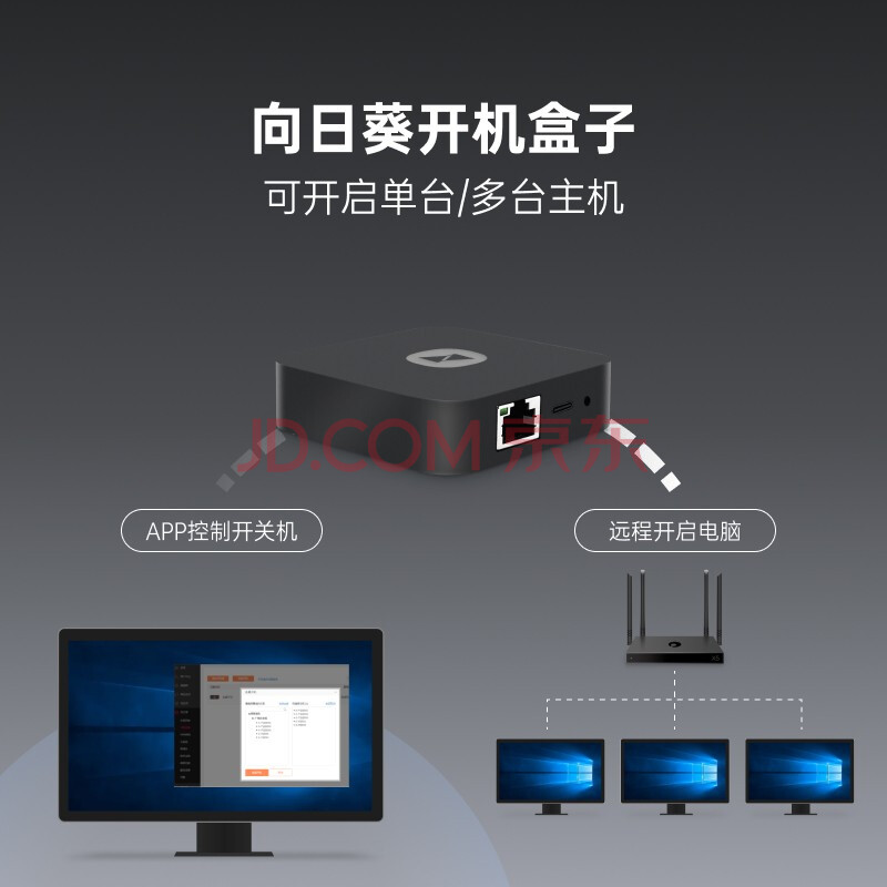 商品相册:贝锐向日葵 开机盒子 局域网版 手机远程mac定时开机批量开启多台电脑桌面办公WiFi有线连接远程监控第
