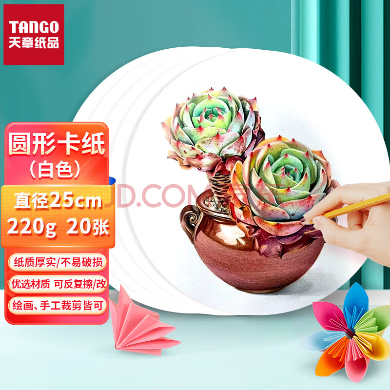 商品相册:天章 (TANGO)【老师推荐】220g白色圆卡纸 直径25cm硬卡纸 送教程手工折纸 美术画纸剪纸DIY 绘画画纸 20张/包第