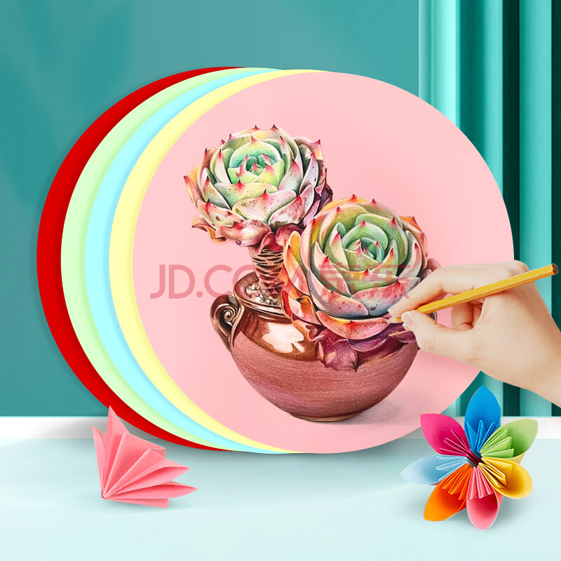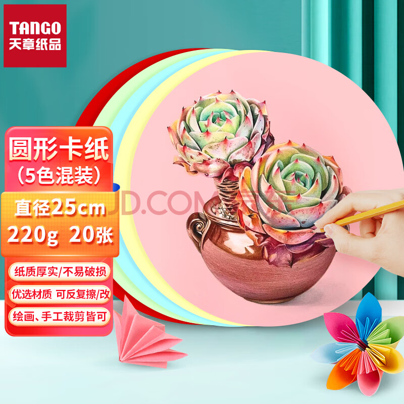 商品相册:天章 (TANGO)【老师推荐】220g五色圆卡纸 硬卡纸手工DIY折纸剪纸 送教程圆纸彩铅美术画纸 混色圆卡纸 20张/包第