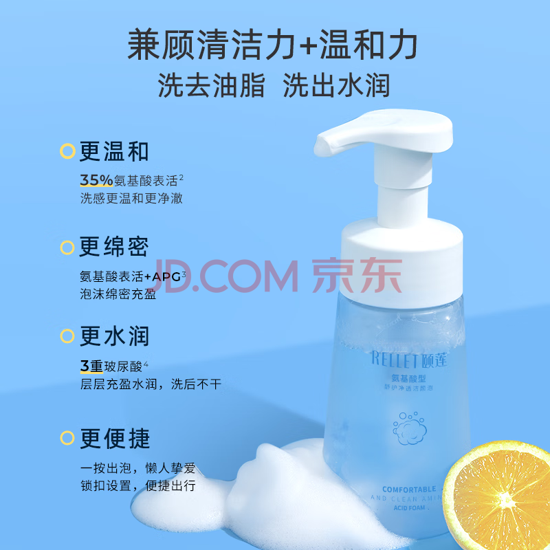 商品相册:颐莲(RELLET)氨基酸净透洁颜泡 洁面温和清洁不刺激洗面奶150ml送女生礼物第