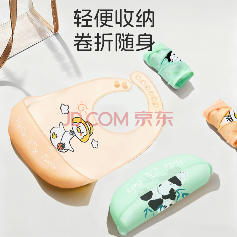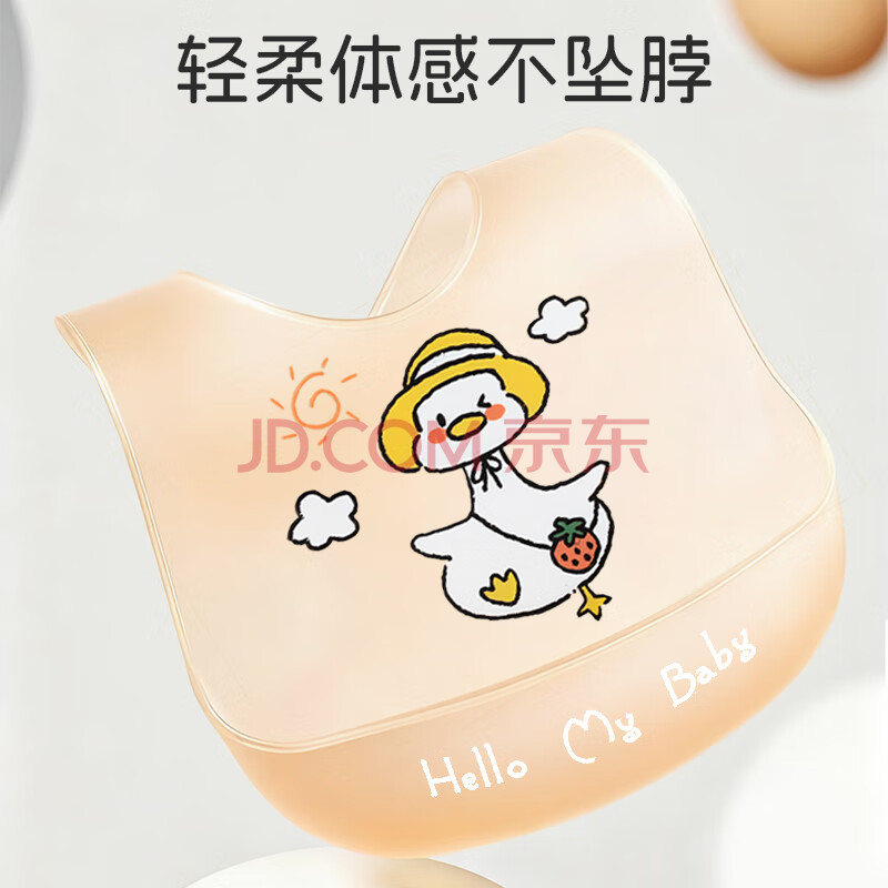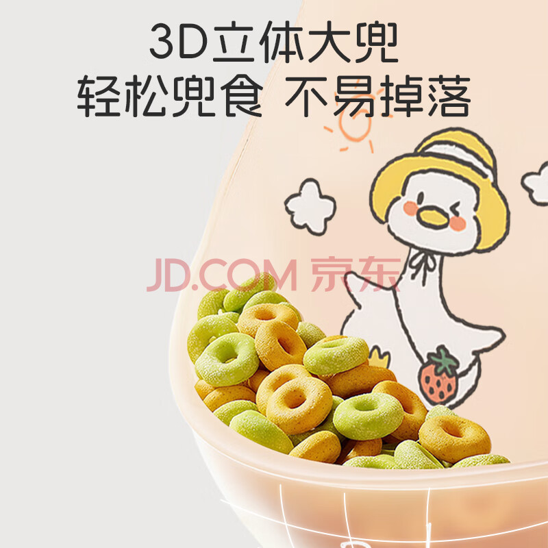 商品相册:马博士 宝宝吃饭围兜防水硅胶辅食饭兜婴儿便携儿童围嘴零食餐兜 草莓鸭第