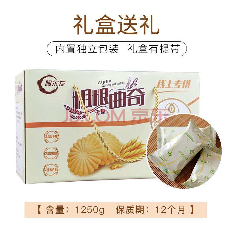 商品相册:阿尔发无糖饼干食品 杂粮粗粮曲奇饼干代餐零食 年货送礼礼盒装1250g第