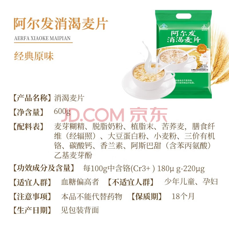 商品相册:阿尔发消渴麦片 即食冲饮 营养早餐代餐 中老年食品600g第1张/共5