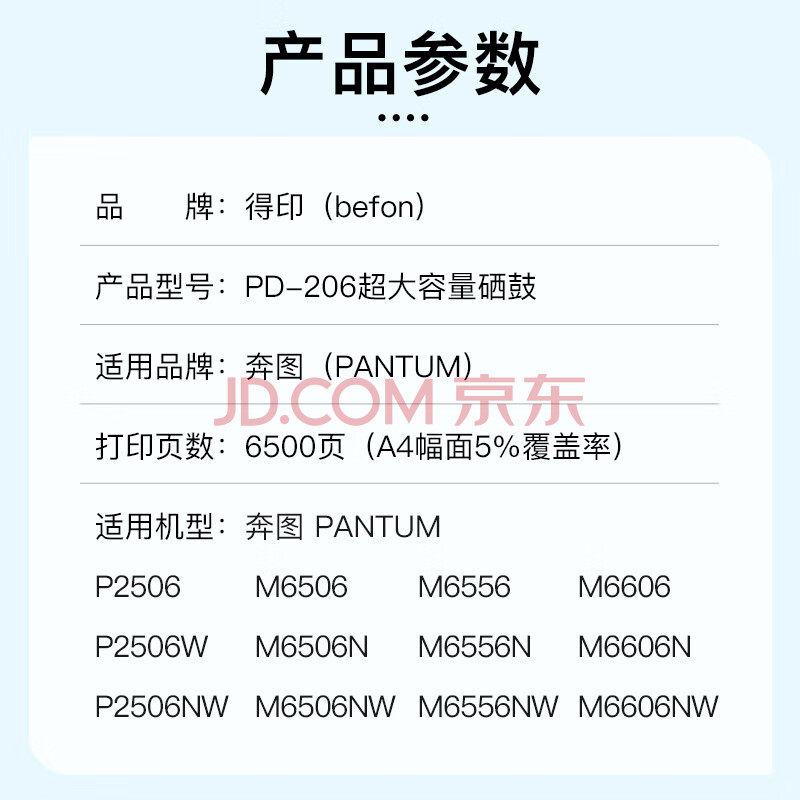 商品相册:得印PD-206硒鼓适用奔图m6506nw硒鼓P2510/2506/M6506/6556/6606 P2510W/2506W/6556NW/6606NW打印机粉盒第