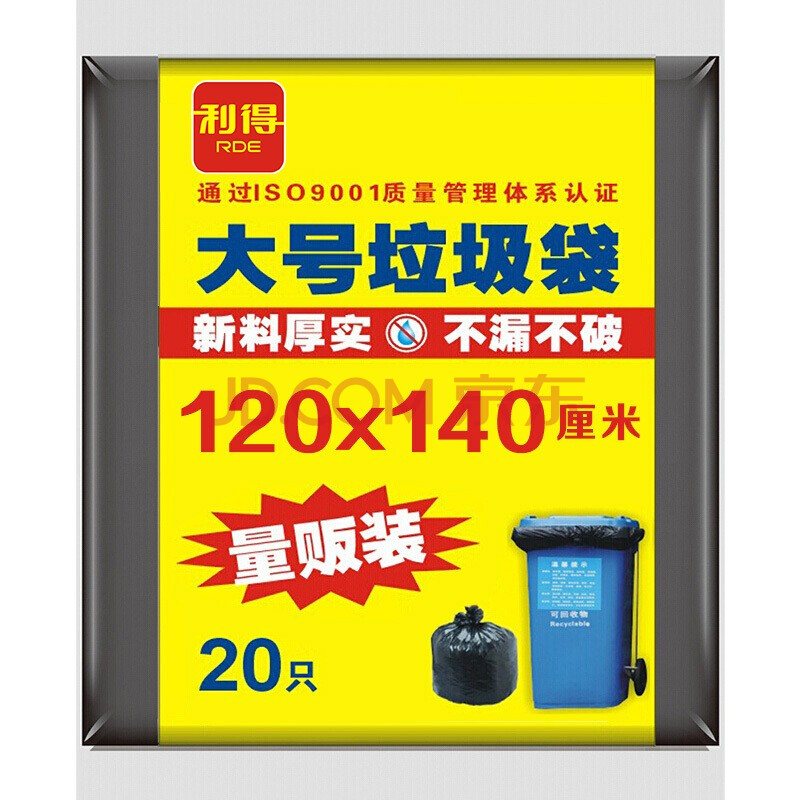 商品相册:利得平口垃圾袋黑色120*140cm20只单面2丝特大号加厚酒店物业袋晒被袋第