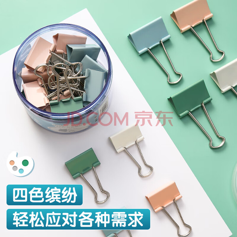 商品相册:晨光(M&G)文具24枚32mm彩色长尾夹票夹 中号金属燕尾夹票据文件夹子 莫兰迪色系办公用品ABS916CA第