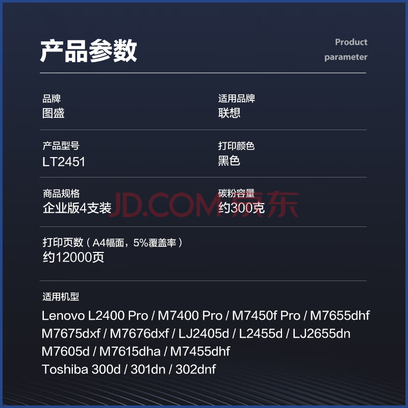 商品相册:图盛LT2451粉盒适用联想m7400pro粉盒Lenovo m7605d硒鼓 M7625DWA m7450fpro m7615dna LJ2405d 2605d打印机墨盒第