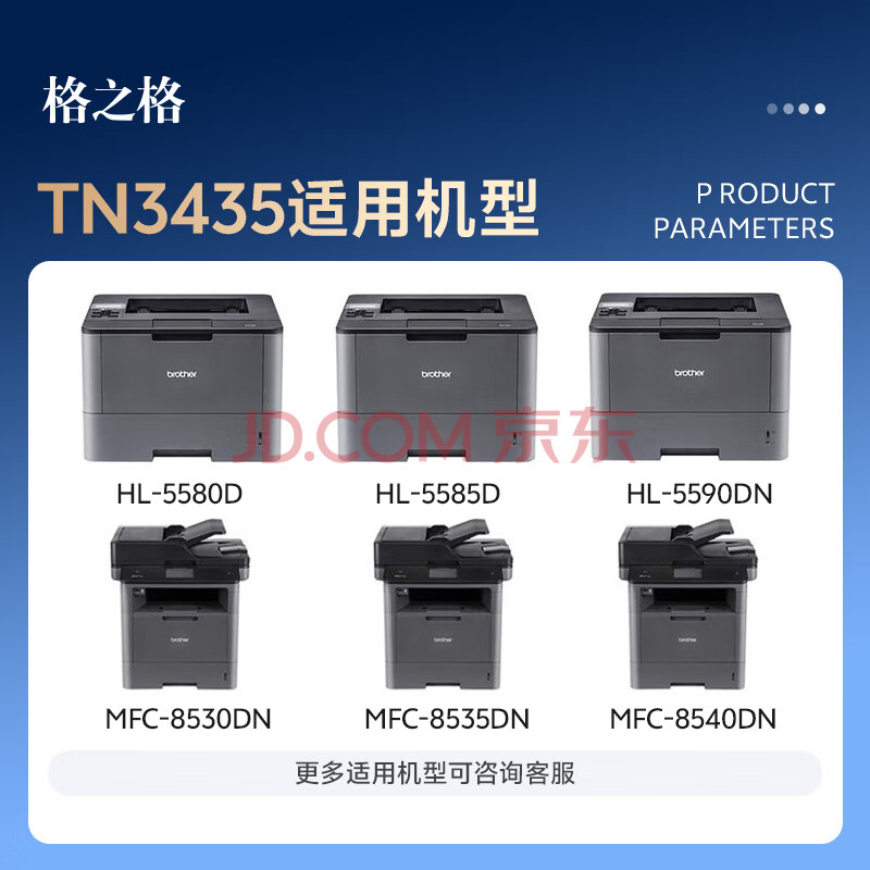 商品相册:格之格tn3435碳粉适用兄弟mfc8530dn粉盒8535dn 8540dn hl5595dn 5590dn 5585d 5580d 8530 3435碳粉6支装第