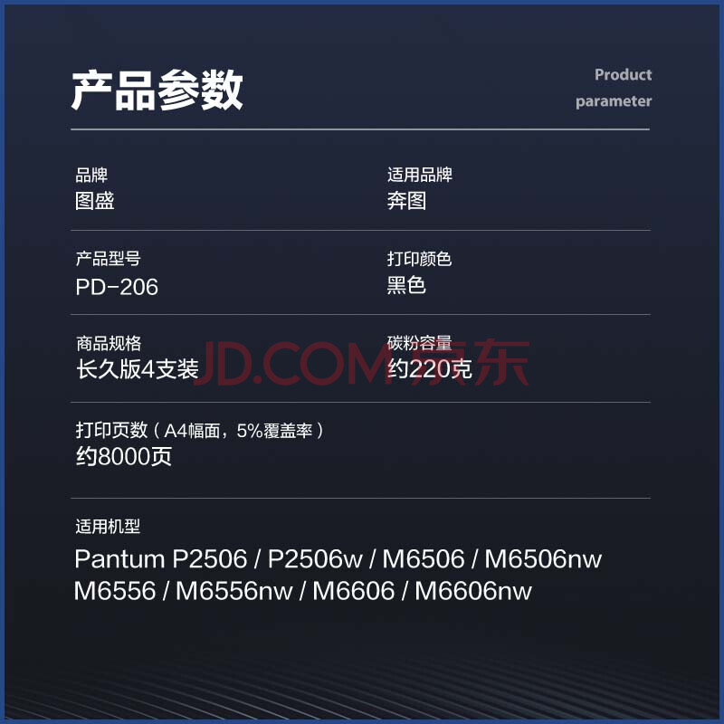 商品相册:图盛PD206硒鼓适用奔图M6506nw硒鼓 PANTUM P2506w P2510w M6556nw M6606nw打印机硒鼓墨粉盒碳粉 PD-206硒鼓第