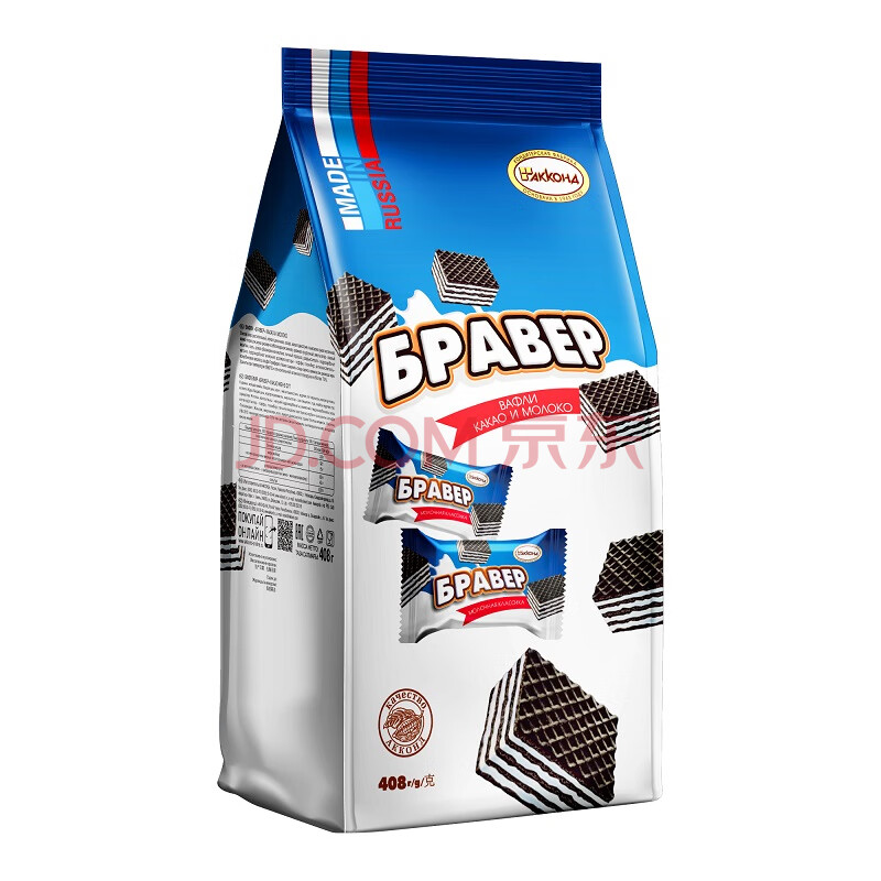 商品相册:阿孔特俄罗斯威化原装进口菲利莫巧克力味饼干零食品408g 独立包装第