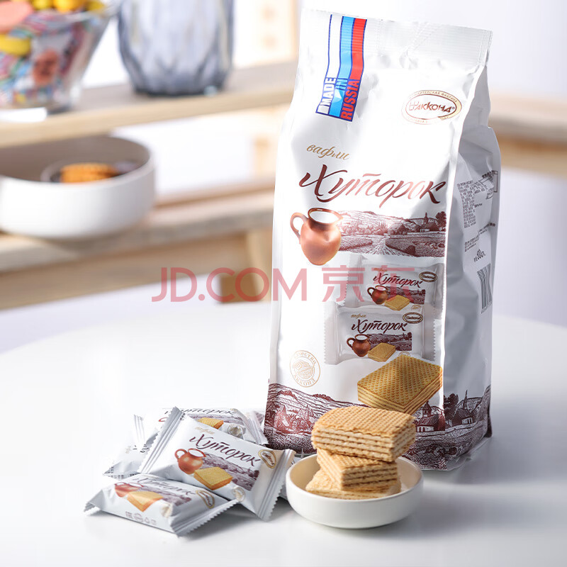 商品相册:阿孔特俄罗斯威化饼干原味牛奶味原装进口零食品休闲408g 独立包装第