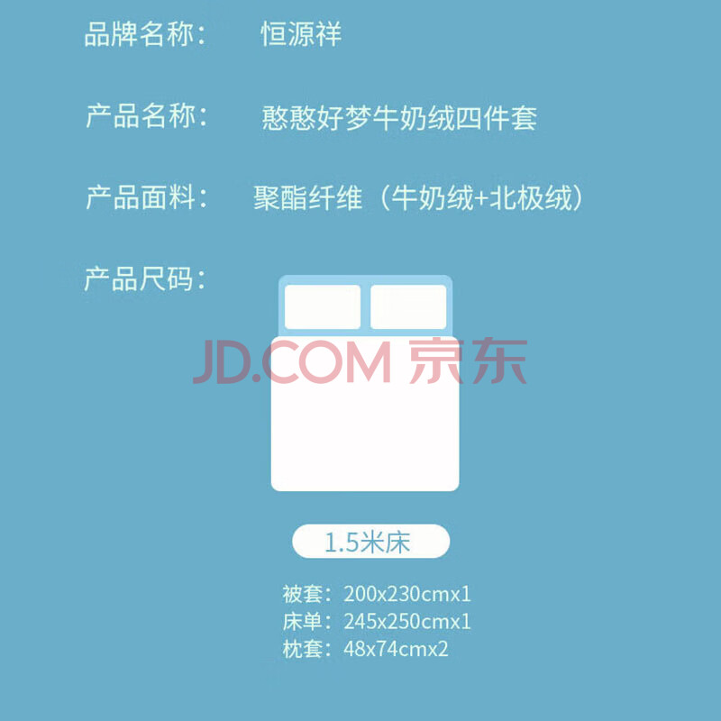 商品相册:恒源祥牛奶绒四件套加绒双面加厚冬季床品套件(被套2*2.3m)憨憨好梦第