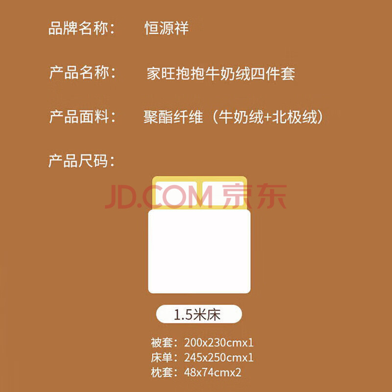 商品相册:恒源祥牛奶绒四件套加绒双面加厚冬季床品套件(被套2*2.3m)家旺抱抱第