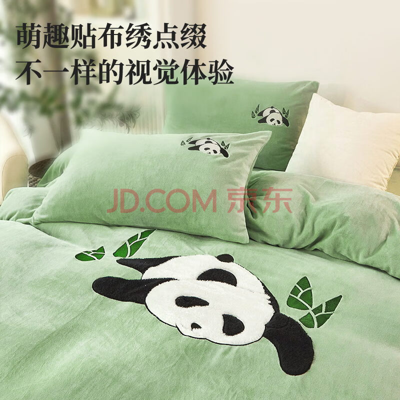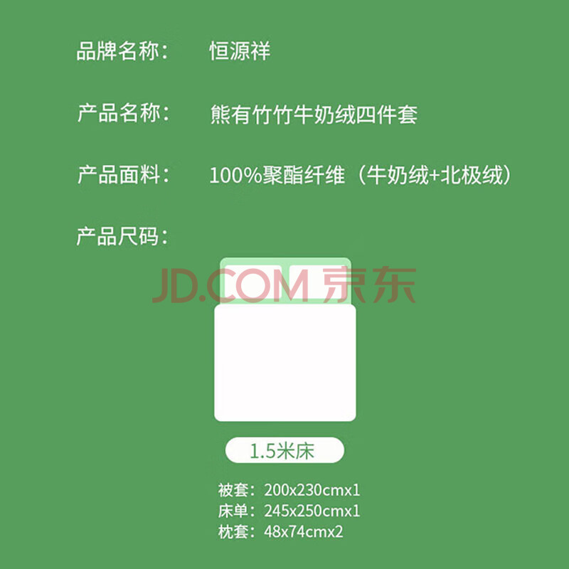 商品相册:恒源祥牛奶绒四件套加绒双面加厚冬季床品套件(被套2*2.3m)熊有竹竹第