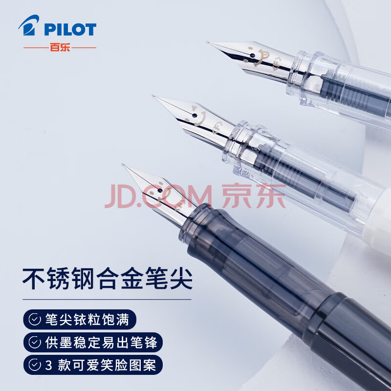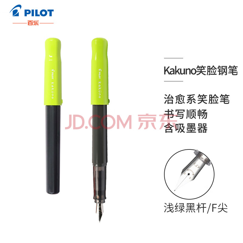 商品相册:【礼物】百乐(PILOT)笑脸钢笔学生练字笔 配吸墨器 入门级书法笔 Kakuno FKA-1SR 浅绿色碳黑杆 F尖第