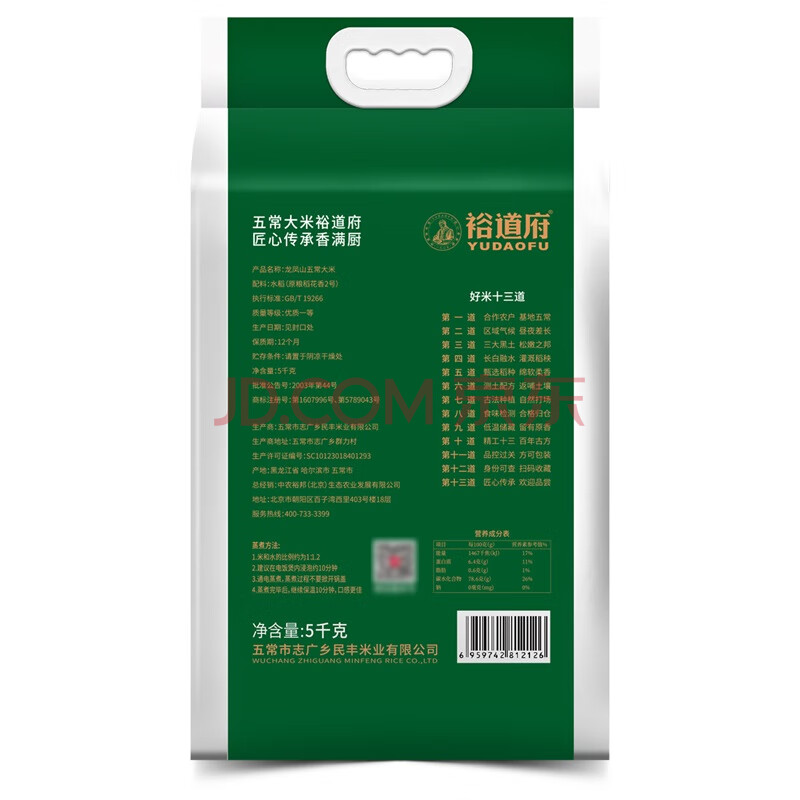 商品相册:裕道府 来碗好饭龙凤山五常大米 原粮稻花香2号 5kg 东北大米第
