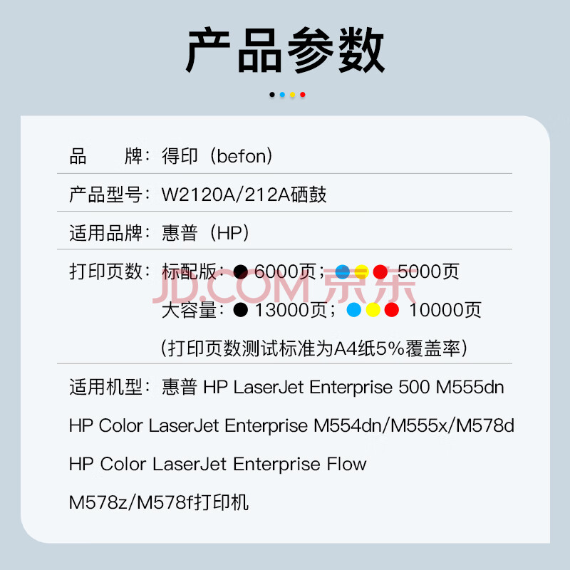 商品相册:得印W2120A/212A硒鼓 黑色 适用 惠普HP M554dn M555dn M555x M578d M578z M578f打印机粉盒墨盒碳粉第