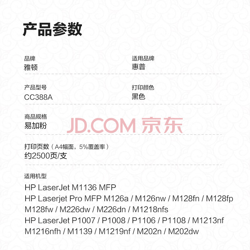 商品相册:雅顿88a硒鼓适用惠普m1136硒鼓 cc388a硒鼓 hp惠普m126a p1108硒鼓hp 1136mfp 1106 m128fn硒鼓1007打印机墨盒第