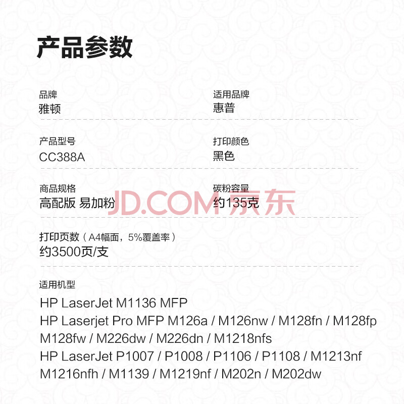 商品相册:雅顿cc388a硒鼓 适用惠普m1136硒鼓 惠普m126a打印机硒鼓 p1108硒鼓hp 1136mfp 1106 m128fn硒鼓1007墨盒碳粉第