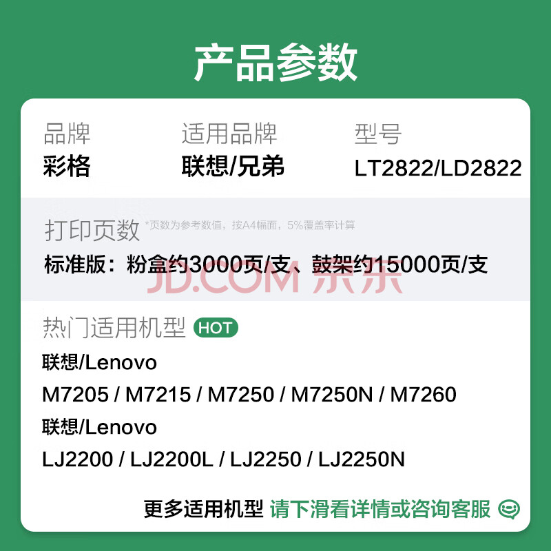 商品相册:彩格适用联想M7205硒鼓 LJ2200L打印机粉盒 7250硒鼓粉盒套装 M7215 7260 2250N LT2822 LD2822 LT2822粉盒第