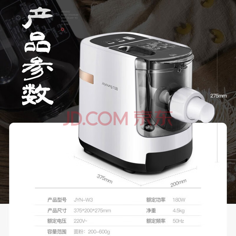 商品相册:九阳(Joyoung)面条机 家用智能全动3分钟出面易清洗电动压面机 JYN-W3【企业采购】【支持一件代发】第