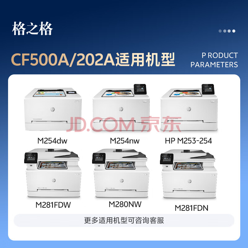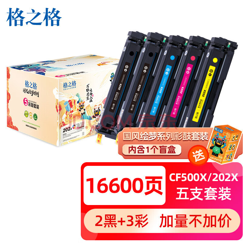 商品相册:格之格202a硒鼓适用惠普m281fdw硒鼓 M254nw M281fdn M280nw M254dw硒鼓 cf500a超大容量易加粉 IP版5支套装第