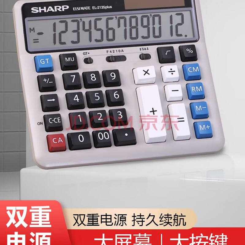 商品相册:SHARP夏普(SHARP)EL-2135 Plus 办公计算器 大屏幕 太阳能双电源 办公用品 2135双电源升级版第