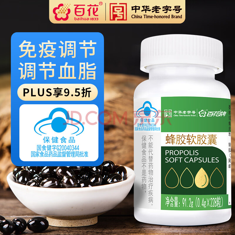 商品相册:百花 蜂胶软胶囊0.4g*228粒 中华老字号 中老年成人 节日礼品 送家人第1张/共5