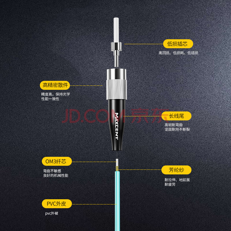 商品相册:麦森特(MAXCENT) 光纤跳线多模双芯OM3万兆工业电信级FC-FC 3米第