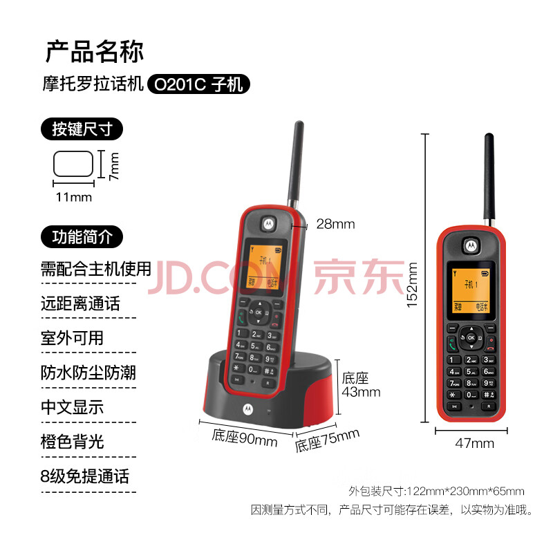 商品相册:摩托罗拉(Motorola)远距离数字无绳电话机 O201C子机(红色)第