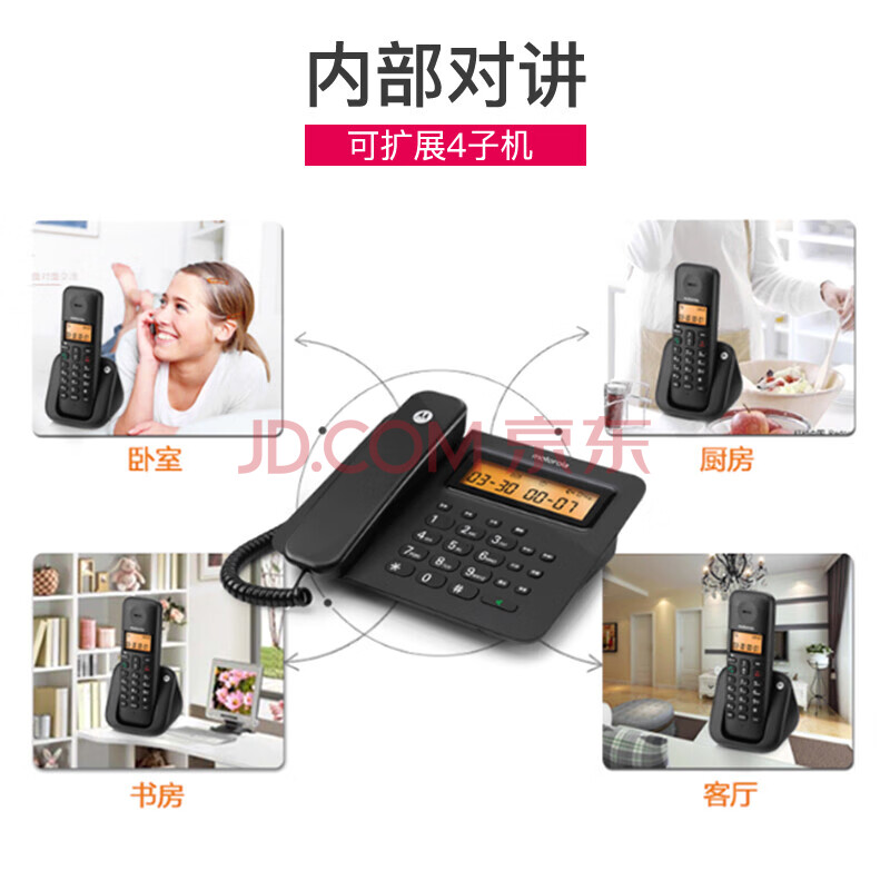 商品相册:摩托罗拉(Motorola)数字无绳电话机 无线座机 子母机 大屏幕 双免提 语音报号需配合主机使用 C2601子机(黑色)第