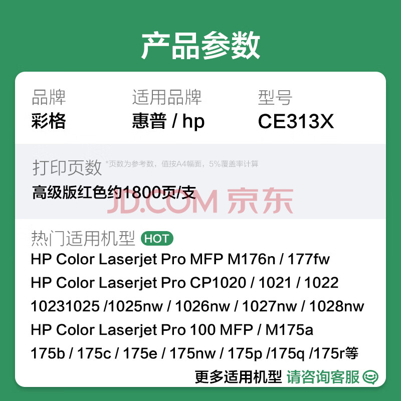 商品相册:彩格适用惠普CP1025硒鼓M176n粉盒M177fw墨盒HP126A M175nw M175a打印机CE310A/CF350A佳能LBP7010C LBP7018C第