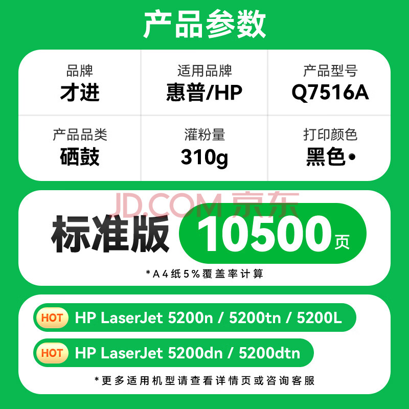 商品相册:才进适用惠普5200硒鼓LaserJet 5200LX q7516a HP16A碳粉5200L 5200DN佳能3500硒鼓3900 crg-309打印机墨盒A3第