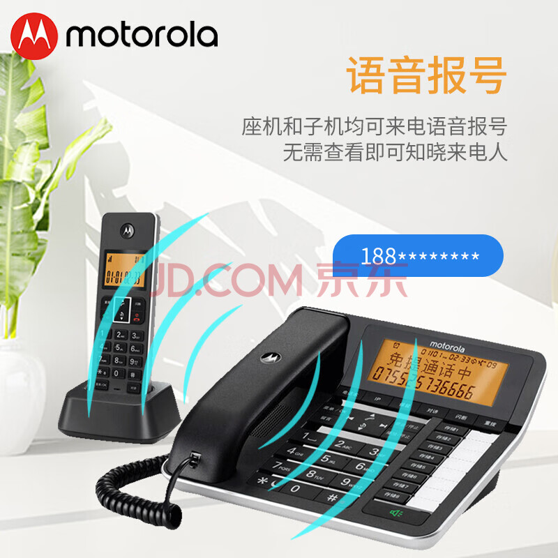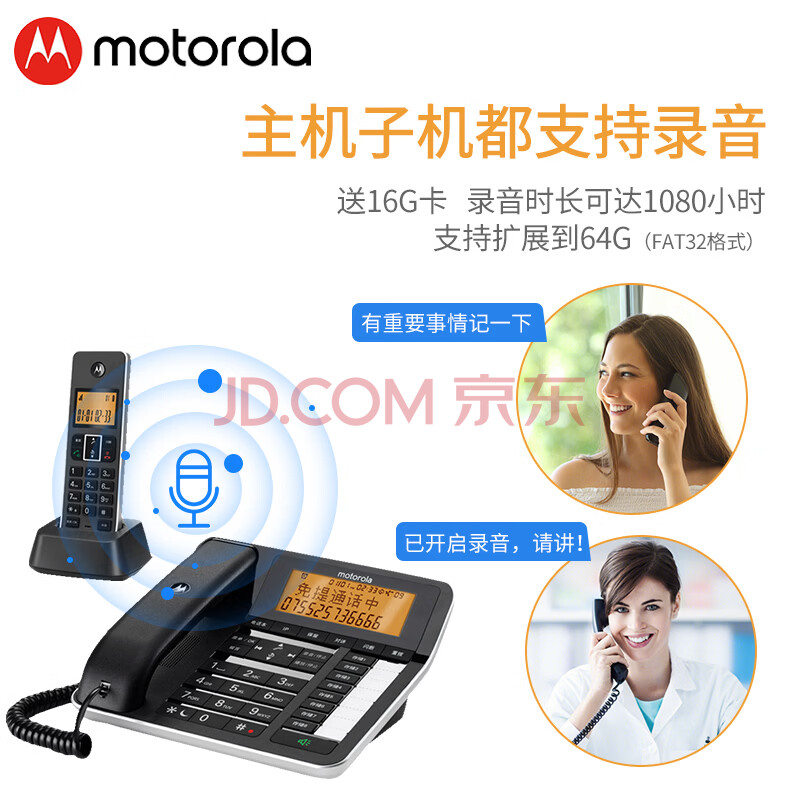 商品相册:摩托罗拉(Motorola)录音电话子母机子机 可录音 钢琴烤漆 语音报号 需配合主机使用 C7501RC子机第