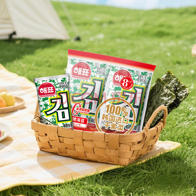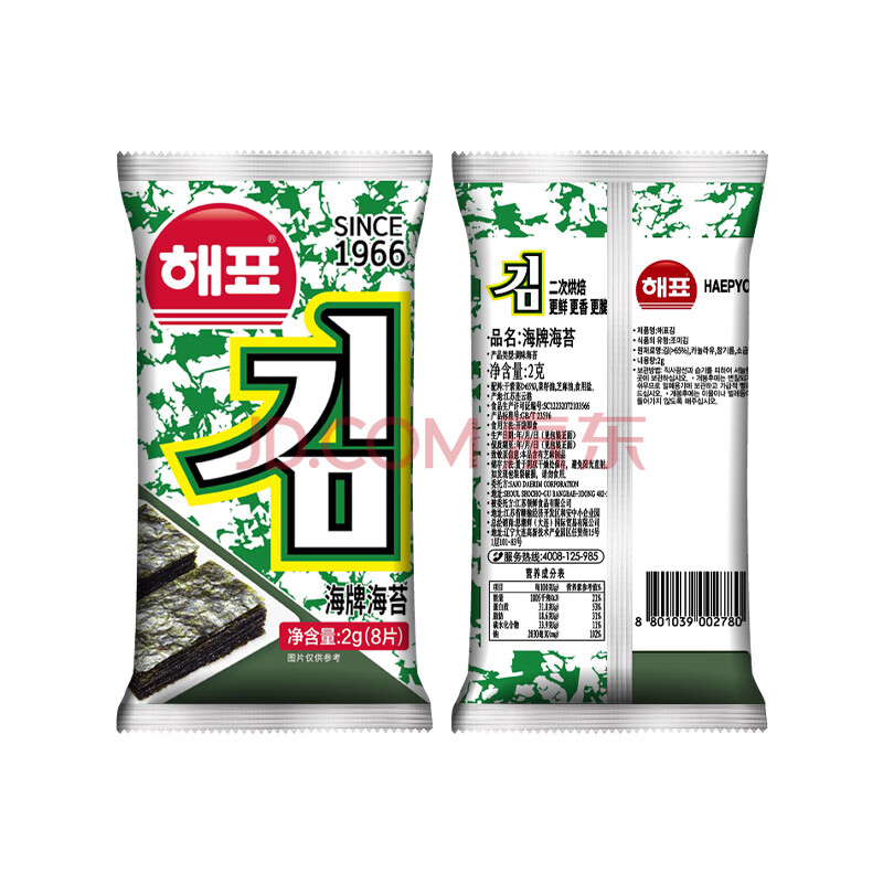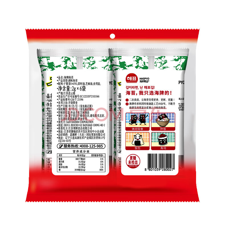 商品相册:海牌菁品韩国进口经典原味海苔儿童休闲香脆紫菜非油炸即食零食2g*6包第