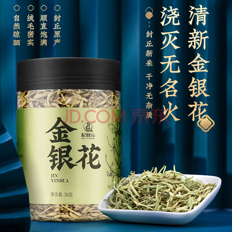商品相册:杞利元 金银花茶 河南封丘金银花50g/罐 花草茶 菊花决明子养生茶饮第