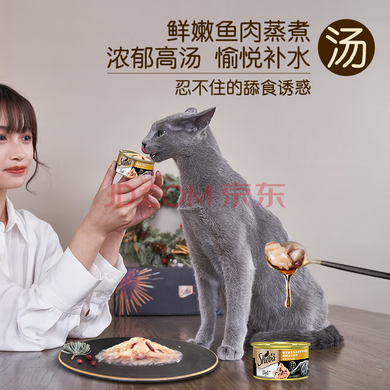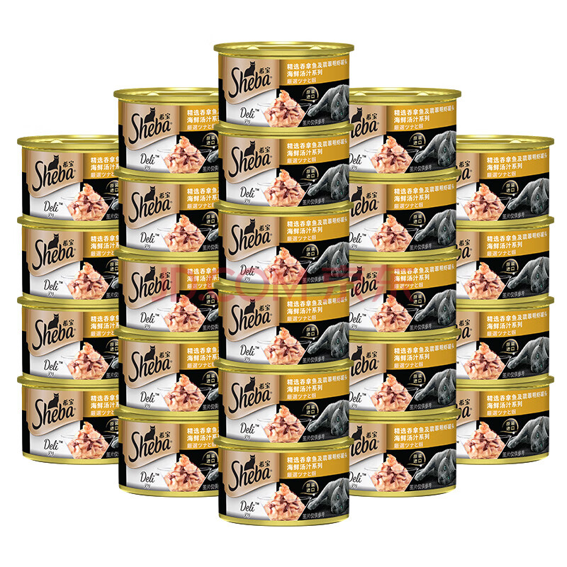 商品相册:希宝猫罐头吞拿鱼及翡翠明虾85g*24罐海鲜汤汁系列进口猫湿粮整箱装第
