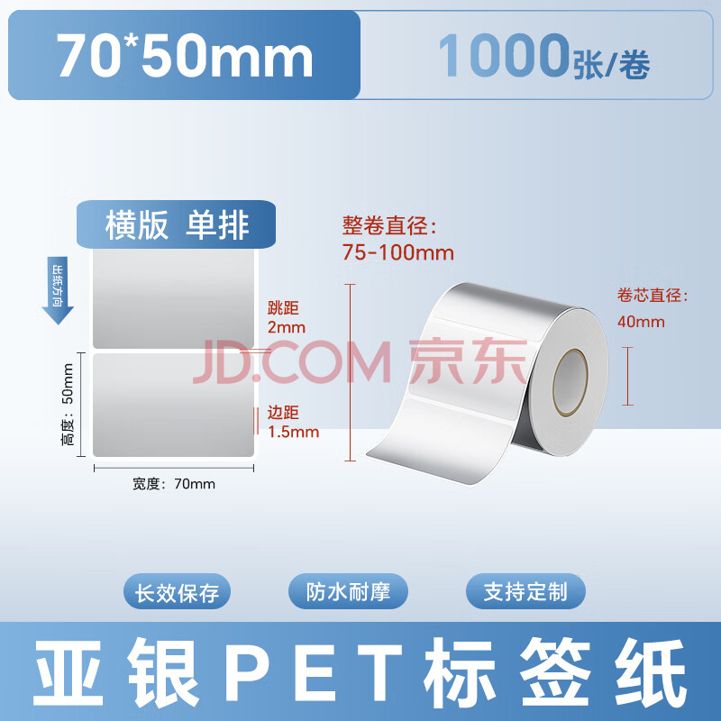 商品相册:远平条码 亚银PET不干胶标签 固定资产条码打印纸 横板70mm*50mm*1000张 支持定制第