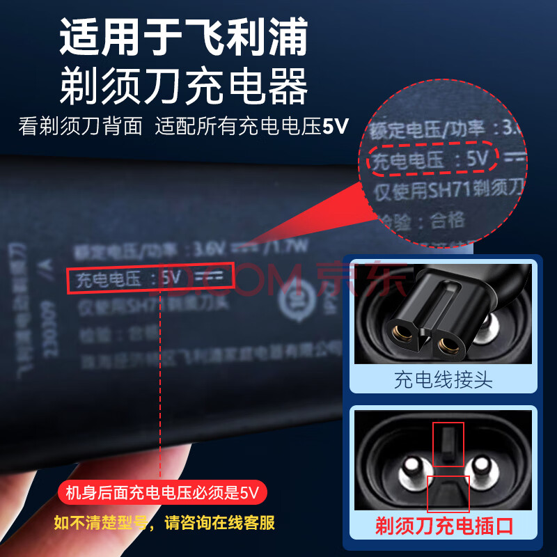 商品相册:轩邑 适用飞利浦剃须刀充电器理发器刮胡刀充电线PQ888/889/X5005/S1113/S1118/S1213/S5831/S7837-5V第