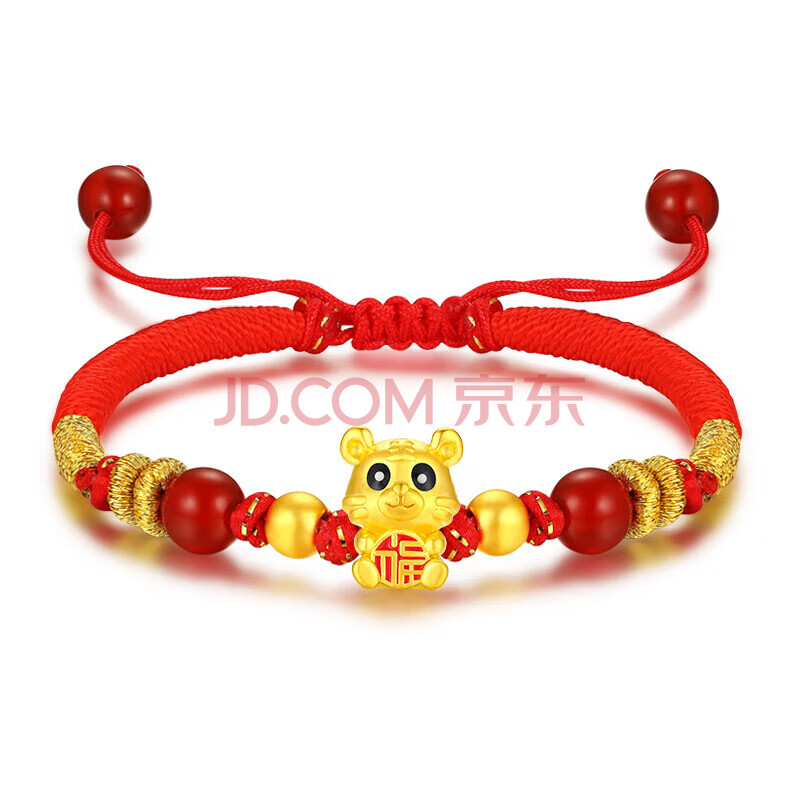 商品相册:Lossot生日礼物本命年十二生肖虎足金福虎金珠黄金转运珠手链金虎红绳第
