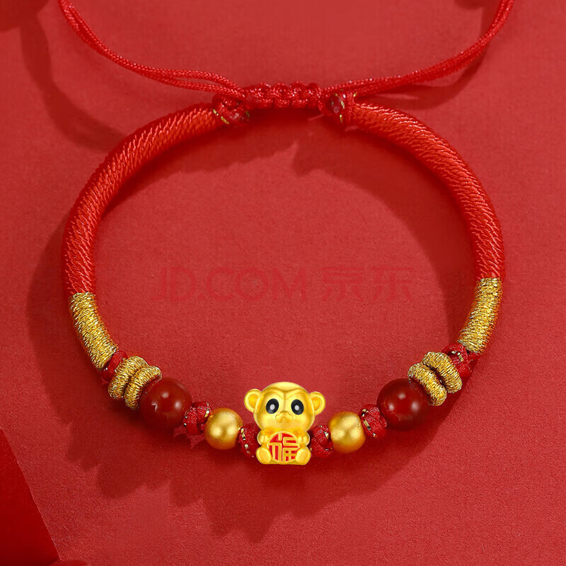 商品相册:Lossot生日礼物本命年十二生肖猴足金福猴金珠黄金转运珠手链金猴红绳第
